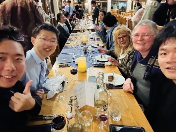 吴浩洋(左二)在参加牛津大学短期游学项目期间与师生们聚餐