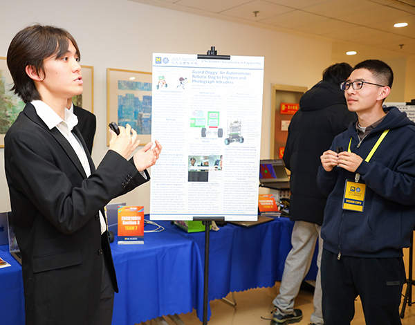 舒睿在学院冬季设计展上演示所属团队的工程项目