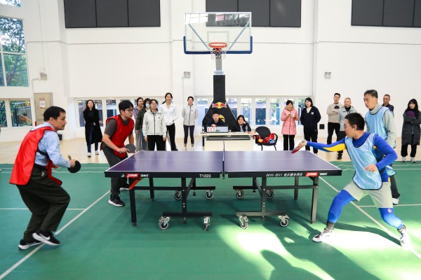 本次挑战赛采用了广受欢迎的”红蓝对抗”模式,设置气排球、乒乓球、羽毛球及篮球四个团体项目。赛场上,红蓝两队队员全情投入,默契配合;赛场边,加油声、欢呼声此起彼伏。每一次精彩的扣杀、精准的传递、顽强的救球,都是”祖国至上、团结协作、顽强拼搏、永不言败”女排精神的生动写照。